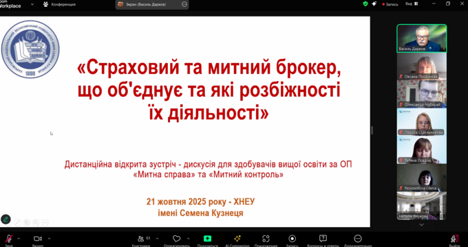 До відкритої зустрічі-дискусії на тему «Страховий та митний брокер: що об’єднує та які розбіжності їх діяльності» долучилися здобувачі спеціальності D2 (072) «Фінанси, банківська справа, страхування та фондовий ринок» – Марина БЕРЕЗИНСЬКА, Артем МЕЗЕТКОВ, Наталія СОПІЛЬНЯК, Олександр ЩЕРБИНА, Олександр ЧАБАРАЙ, Руслан НАВРОЦЬКИЙ, Олександр ПРИЩЕНКО та спеціальності C1.02 (292) «Міжнародні економічні відносини» – Данило ЗОСИМЧУК, Олександр ТОЛМАЧОВ, Артем ЗУБАЧ, Андрій ІВЕРШЕНКО, Денис ВЕЛИЧКО, Максим КОЛОСАЙ, Рафаель САРКІСЯН, Владислав МАМРОСОВ.