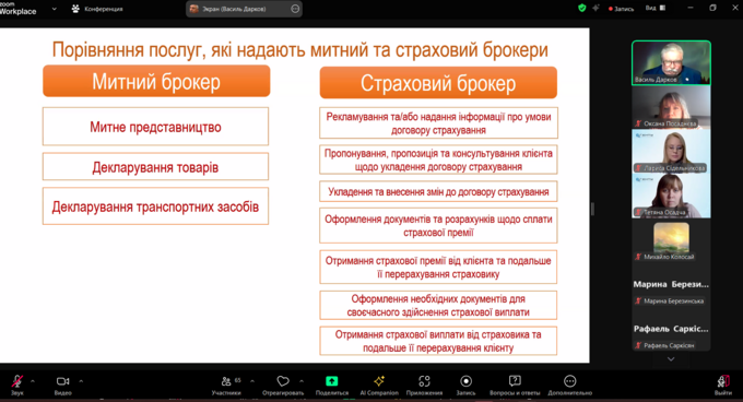 Лектор поділився практичними прикладами із власного професійного досвіду, акцентуючи увагу на важливості прозорості, відповідальності та клієнтоорієнтованості у роботі страхових і митних посередників.
