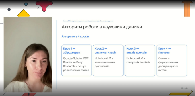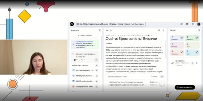 Під час проведення занять розглядалися інструменти Deep Search та Gemini, які можна використовувати для аналізу сучасних освітніх трендів, порівняння програм провідних університетів та створення кейс-стаді, що стимулюють критичне мислення здобувачів.