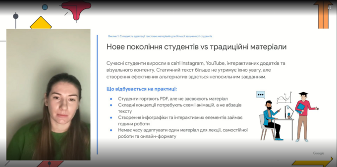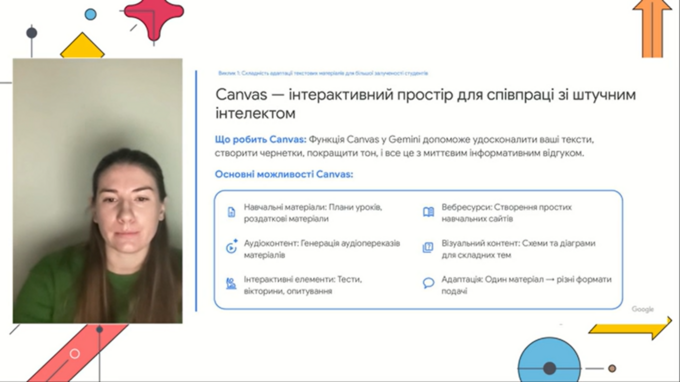 Програма навчання включала також вивчення механізму використання Gemini Canvas для створення інтерактивних проєктів та завдань, які сприятимуть оптимізації щоденної роботи викладачів для підготовки до занять.